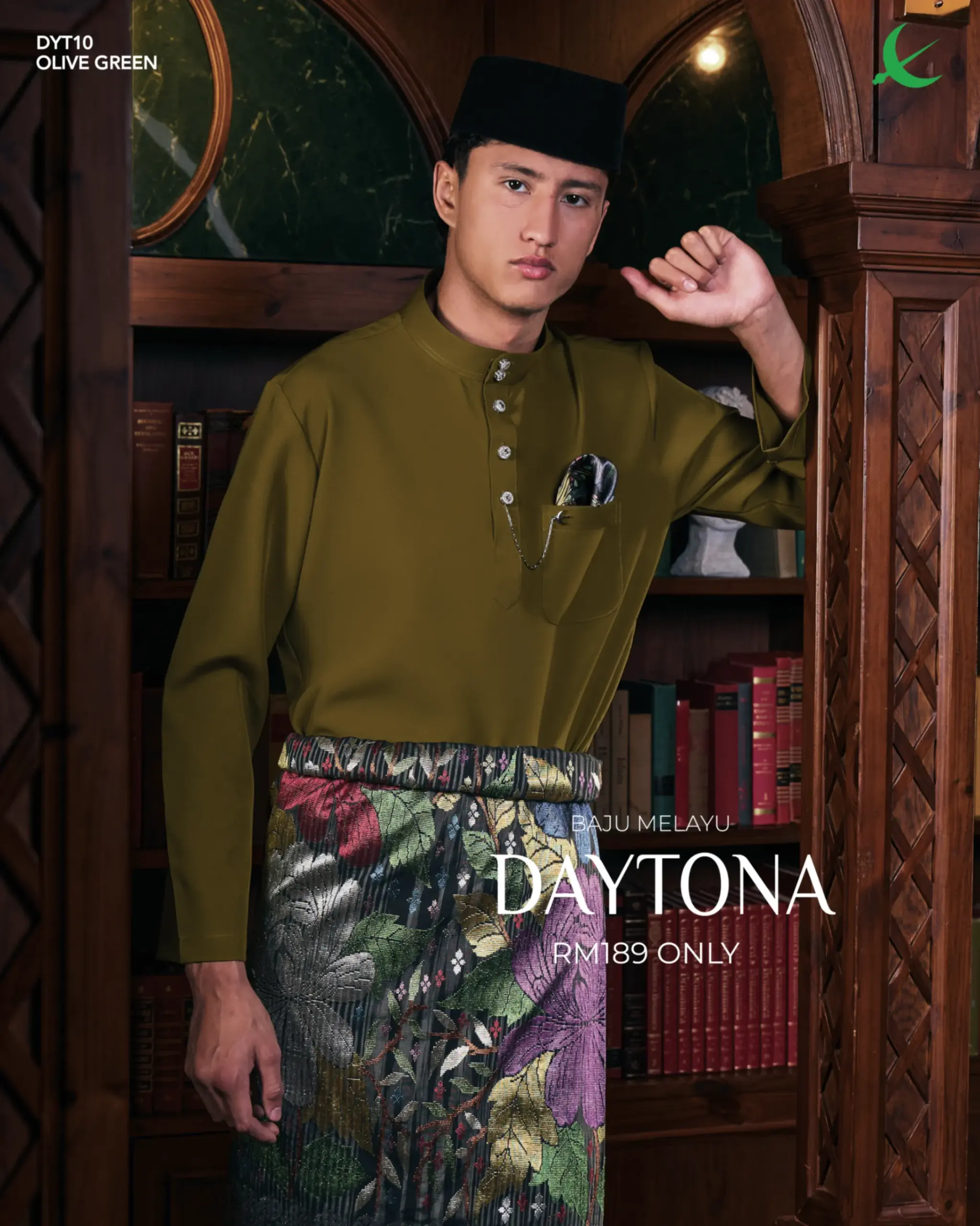 Baju Melayu Daytona – Olive Green